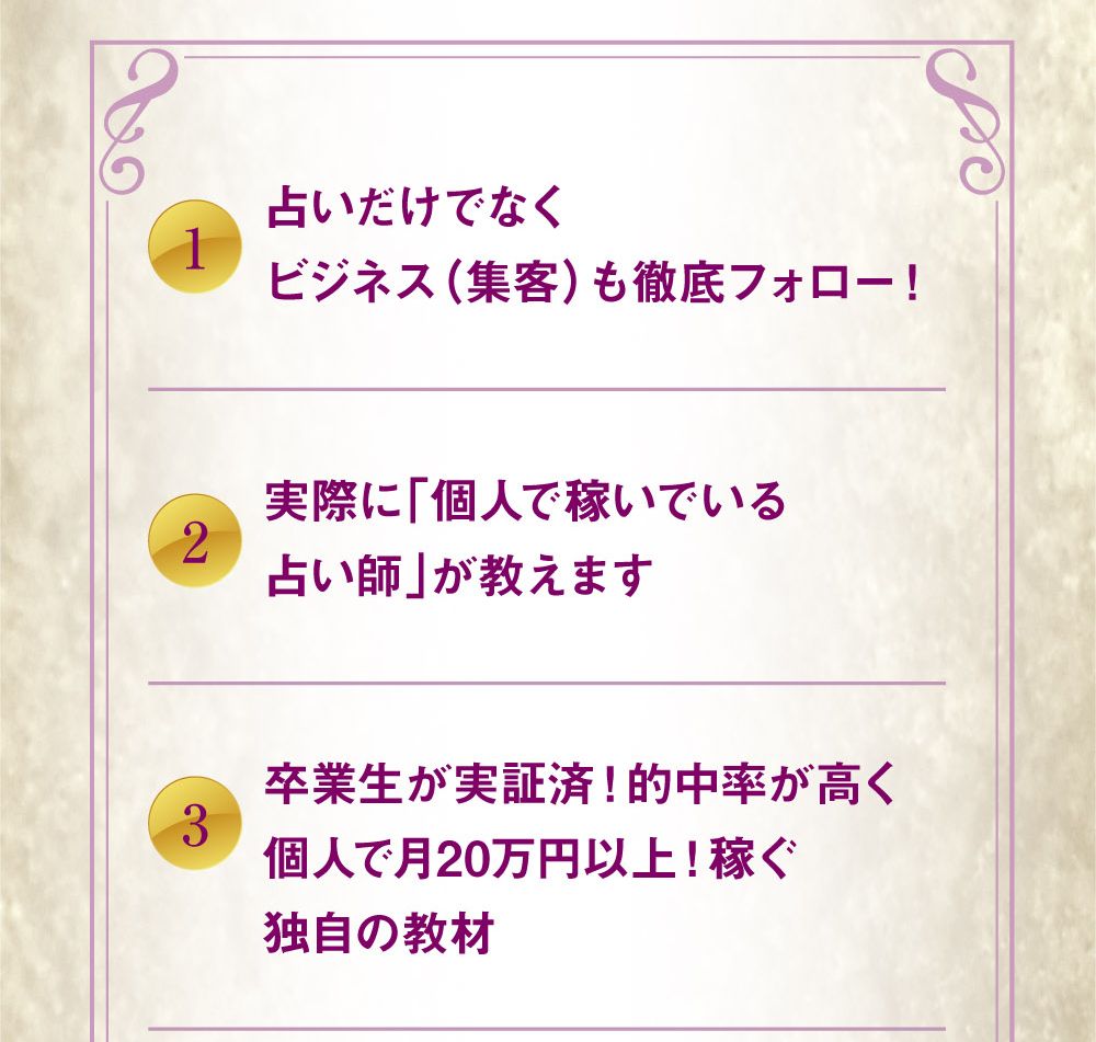 占い体験LP 生徒さんの声と実績はこちら » 『占い個人集客コツ 集客ブログ コンサルします!』 稼ぐ占い師になる方法はコチラ » 『【1day完結】占い師起業!人気占い師プロデュース』‼️ 稼ぐ占い師になる方法はコチラ » 『占い集客 コンサル10回コース』占い集客コンサルします❣️ 『占い集客 コンサル10回コース』 » 無料!体験会に参加する お名前 ※必須 メールアドレス ※必須 メッセージ内容 ご連絡やご質問がある方は記入ください。 Δ